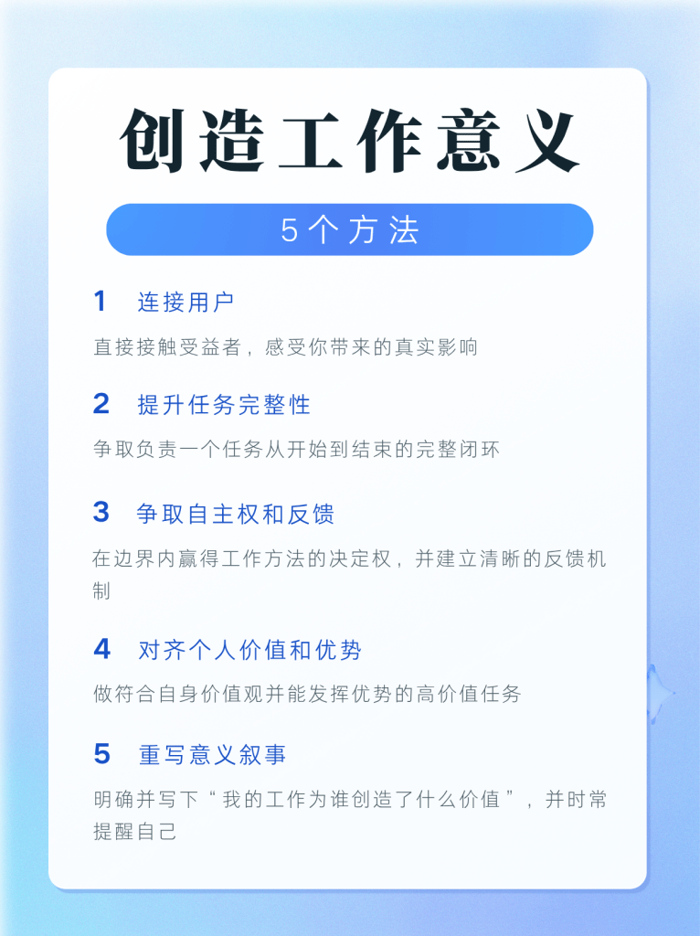 了解了工作意义感的来源和产生机制,我们就可以主动采取行动,创造工作意义感